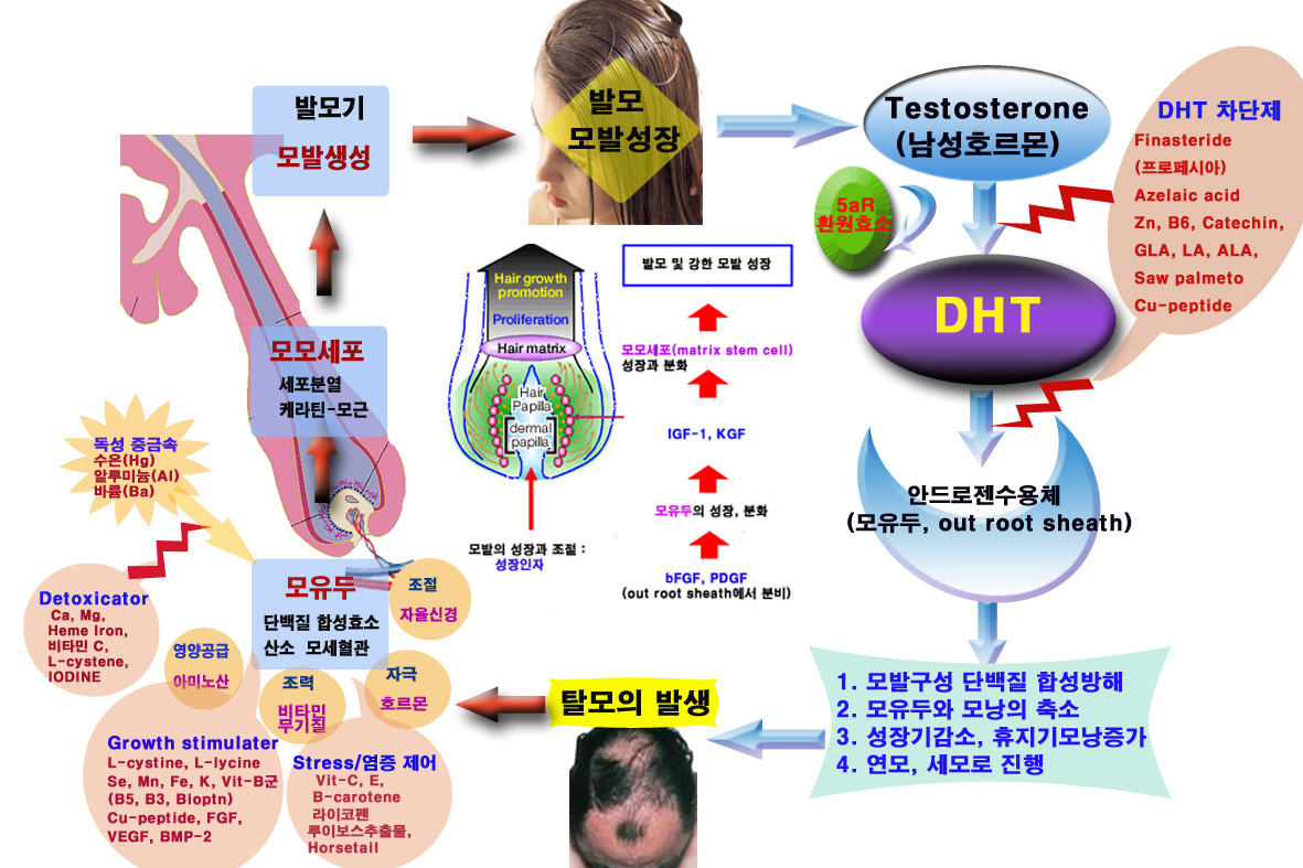 남성 호르몬인 테스토스테론이 DHT(디하이드로테스토스테론)로 전환되면서